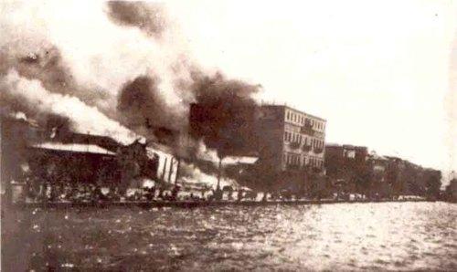 Έβγαλε το φέσι και το πέταξε, να του καίει ένιωθε το κρανίο. Ουρλιαχτά άκουγε τριγύρω, φωνές πόνου και τρόμου. Λάμες άστραφταν στο φως του ήλιου, πυροβολισμοί πέφτανε ασταμάτητα. Ένας Τούρκος τσέτης, μπροστά στα μάτια του, άρπαξε απ’ τα μαλλιά μια γυναίκα μ’ ένα μωρό στην αγκαλιά, την έσυρε λίγα μέτρα πιο κάτω, έχωσε την ξιφολόγχη του στο βρέφος –πέρα ως πέρα– κι έπειτα, γελώντας άγρια τη σκότωσε. Προσπάθησε να καταφύγει στη θάλασσα, πιο οικεία του ήταν η αγκαλιά της, αν ήταν να πεθάνει καλύτερα εκεί. Έφριξε στο θέαμα που αντίκρισε. Η επιφάνεια του νερού ήταν γεμάτη πτώματα ανθρώπων σφαγιασμένων, σώματα παραμορφωμένα, άντρες γυναίκες, παιδιά…